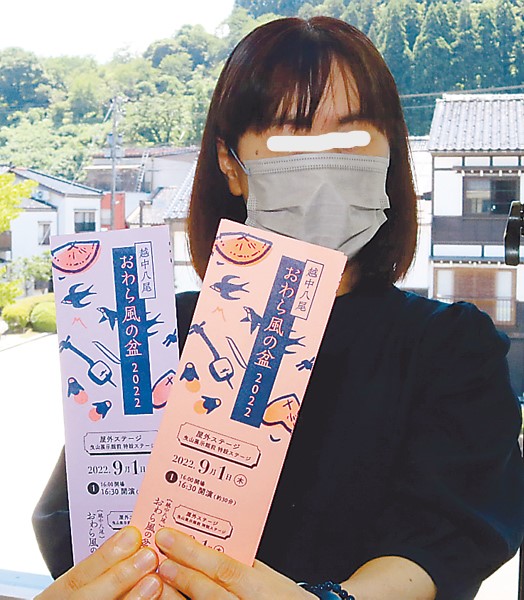 9月1〜3日に富山市八尾町で3年ぶりに行われる「おわら風の盆」に合わせ、越中八尾観光協会は期間中、独自におわらの特別ステージを開く。今年の風の盆は町流しが中心となる中、味わいの異なる舞台演技を楽しんでもらおうと企画。越中八尾観光会館の屋内ホールと屋外駐車場が会場で、8月1日から予約を受け付けています。