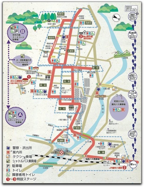 駅・ホテル・旅館(富山県内・県外お迎えOK) → 八尾町内会場